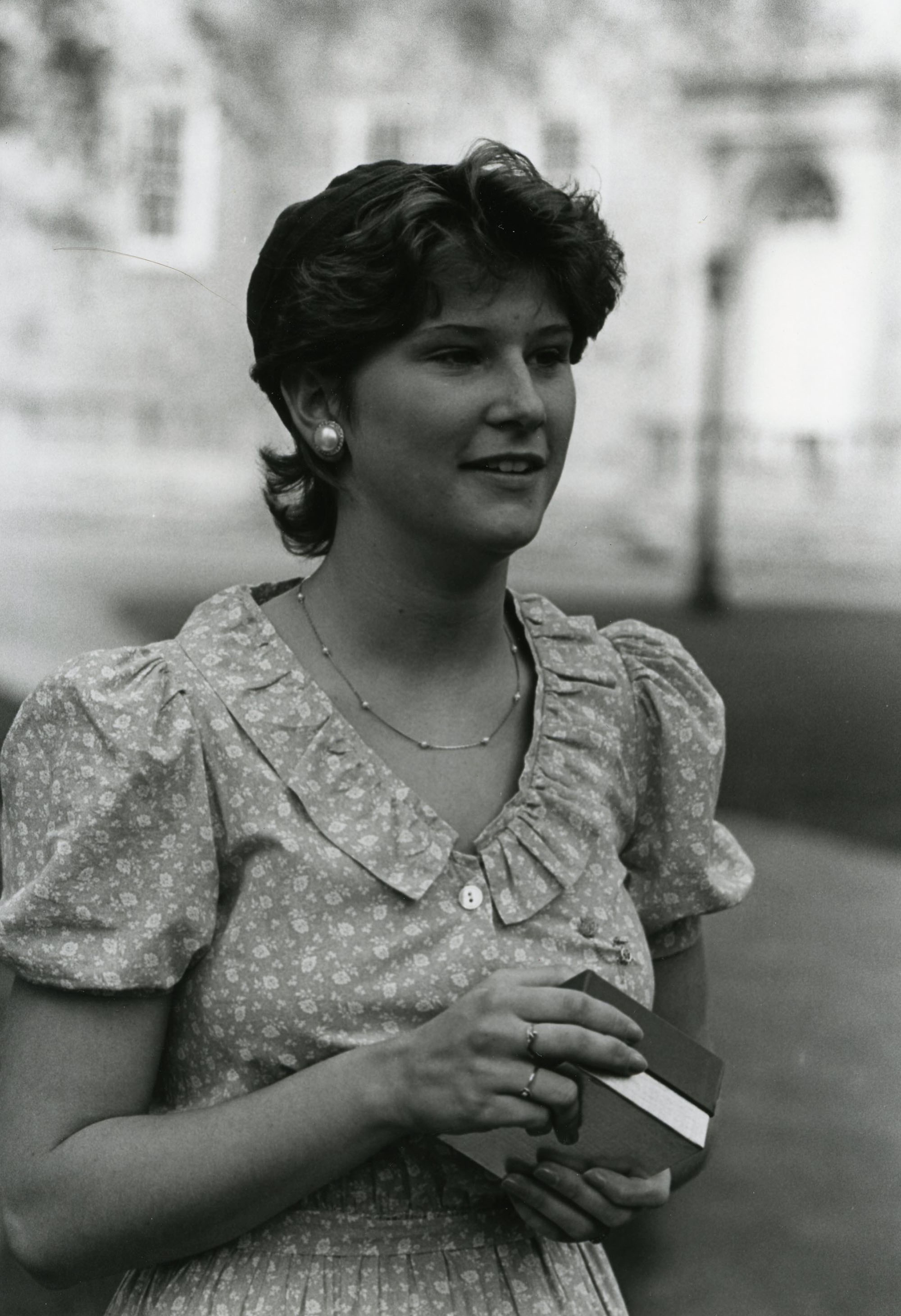 A Wheel and Chain member at the annual tapping ceremony outside Old West in 1984.