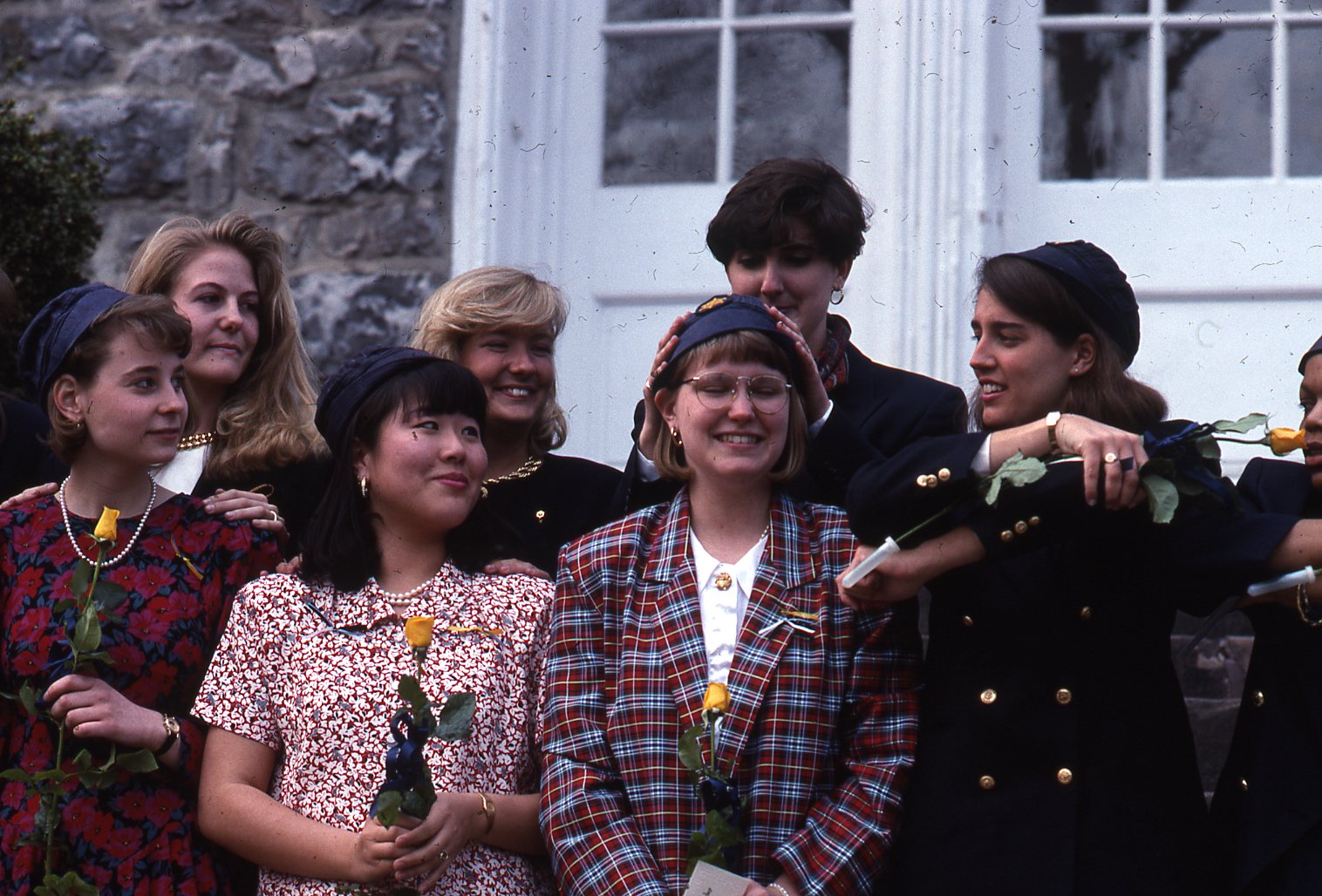 New members of Wheel and Chain receive their blue hats during the tapping ceremony in spring 1992.