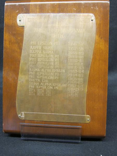 Three wooden plaques featuring scholarship award winners for 1956 to 1971.
