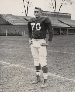 Harvey Edward Bair, a member of the Class of 1958, in his football uniform.