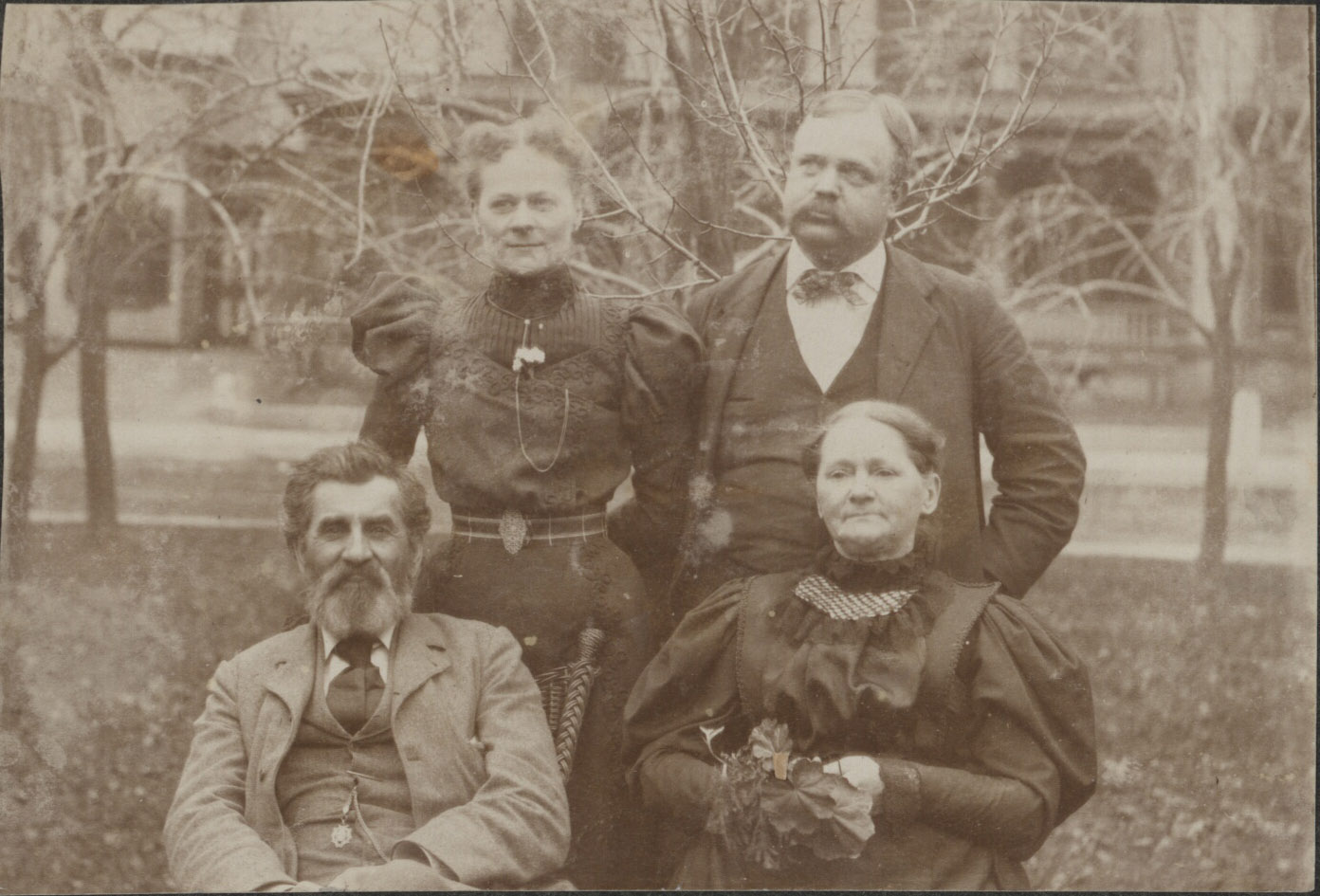 View of Zatae Longsdorff Straw (Class of 1887) with her husband Amos Gale Straw and her parents William Longsdorff (Class of 1856) and Lydia Longsdorff.