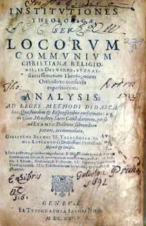 Bucanus, Gulielmus. Instivtiones Theologicae, sev Locorvm Commvnivm Christianae Religionis, ex Dei vereo, et praestantissimorum Theologorum Orthodoxo consensu expositorum, Analysis. Geneva: Iacobi Stoer, 1625.