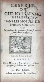 [Bony, Pierre de]. L'Esprit Du Christianisme Representé Dans Les Moeurs Des Premiers Chrêtiens. Rouen and Paris: Helie Josset, 1674.